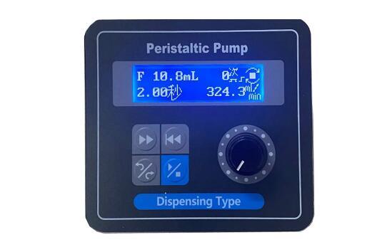 Product Model BT600-1F Speed Adjustment Range 1-600RPM Speed Resolution 1RPM Dispensing Function Precise quantitative dispensing of liquids Dispensing Volume Range 0.1mL-999L Number of Dispensings 1-9999 times ("0" for infinite loop) Dispensing Time Interval 0.1S-24Hr Display Function 128×32 graphic dot matrix LCD display, flow rate and speed displa$yed simultaneously Direction Control Reversible operation function Operation Method Rotary encoder switch combined with membrane key operation for eaδsier user operation Full Speed Function The full-speed button allows for quick filling and emptying of the tubing Power-off Memory Function Continues operation after power-on, according to th¶e pre-power-off state Back Suction Function Runs in dispensing mode; after pump stops, it reverses a£ certain angle to prevent liquid dripping Flow Calibration Function Automatic flow calibration function, flow accuracy up to ±0.5% Dispensing Volume Calibration Function Input the actual dispensing volume value for automatic dispensing volume₽ calibration. Dispensing accuracy can reach ±0.5% External Control Function Optional external control modules for start/stop control, direction control, and f↔low control. 4 optional external control modules: 0-5V, 0-10V, 4-20mA, 0-10KHz Communication Function Optional communication module for RS485 communication control (using the general Mo>dbus protocol) Foot Switch Function Optional foot switch for start/stop control Dispensing Bracket Optional filling bracket for installing filling nozzles Power Consumption 70W Applicable Power Supply Wide voltage AC90-260V, 50Hz/60Hz Operating Environment 0-40℃, humidity <80%, no condensation Driver Weight 4.8KG Protection Level IP31 Selection Guide