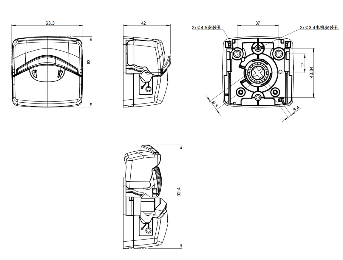 泵頭型号 外(wài)材料料 滾輪材料 泵頭滾輪數(shù) 适用(yòng)軟管 适用(yòng)轉(RPM) 參考流量(mL/min) 重量(KG) 114DV IXEF PET+TX 4 13#,14#,19#,16#,25# ≤600 560 0.2 116DV 6 ≤400 226 0.2 軟管安裝
